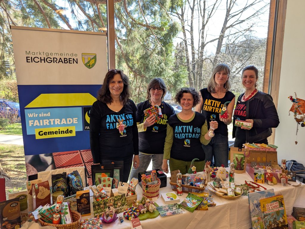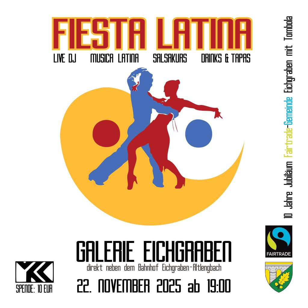 Eichgraben engagiert sich seit Juni 2015 aktiv für den fairen Handel. Seitdem ist Einiges geschehen und die Bewusstseinsbildung rund um das Thema im Ort aktiv betrieben worden: regelmäßige Teilnahme an lokalen Märkten, eine eigene Gemeinde-Schokolade, jährliche Workshops in den Schulen in Kooperation mit Südwind Niederösterreich, mehrere Ausstellungen, Theateraufführungen des Hope Theaters Nairobi, Filmabende, Verteilaktionen am Bahnhof, eine Rätselrallye und Vieles mehr. Das 10-jährige Jubiläum wird deshalb gebührend im Rahmen einer Fiesta Latina gefeiert: am 22. November 2025 ab 19:00 Uhr wird Bürgermeister Georg Ockermüller in der Galerie Eichgraben die Urkunde zum runden Geburtstag von FAIRTRADE Österreich entgegennehmen. Mit dabei sind auch Aktivistinnen der Arbeitsgruppe, die das Projekt maßgeblich unterstützen. Es wird auch eine Tombola mit FAIRTRADE Goodies sowie einen Verkaufsstand mit Produkten des Weltladens St. Pölten geben. Alle sind herzlich eingeladen mitzufeiern!