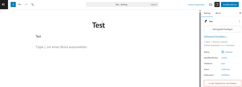 Um einen eigenen Beitrag zu schreiben, klicke auf „Beitrag hinzufügen“. Nicht erschrecken, jetzt öffnet sich ein neues Fenster mit neuer Ansicht: