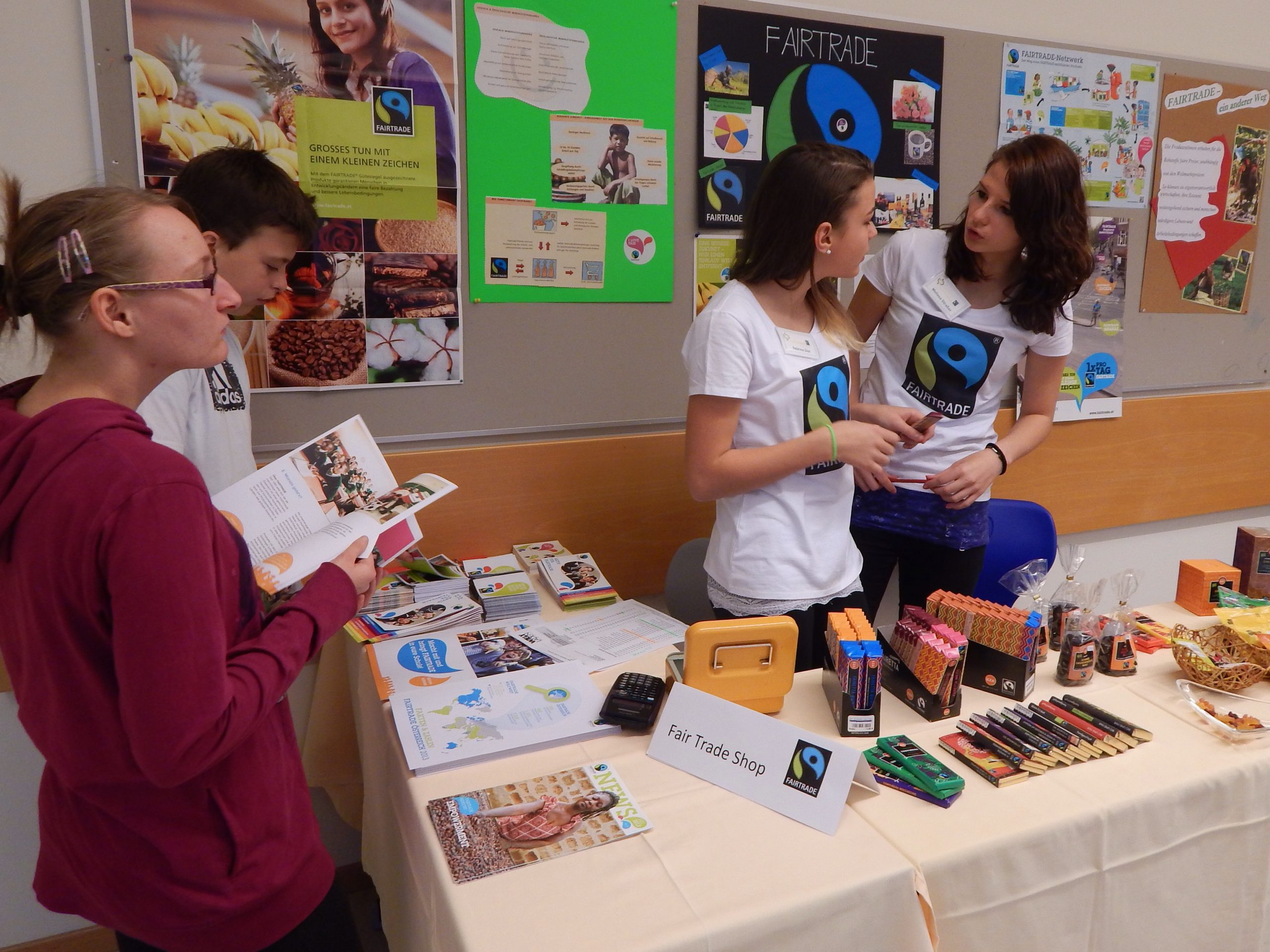 Die BesucherInnen konnten sich also umfassend über Fair Trade informieren, sei es im Gespräch mit den Mitgliedern der Fair Trade- Gruppe oder  mit Hilfe des großzügig zur Verfügung  gestellten Informationsmaterials. Die Schülerinnen der 2A zeigten großes Engagement für den fairen Handel und verbesserten mit ihrem Aktionstag das Verständnis für die Lebens-und Arbeitsbedingungen von benachteiligten Kleinbauern- und Produzentenfamilien in Afrika, Asien und Lateinamerika.