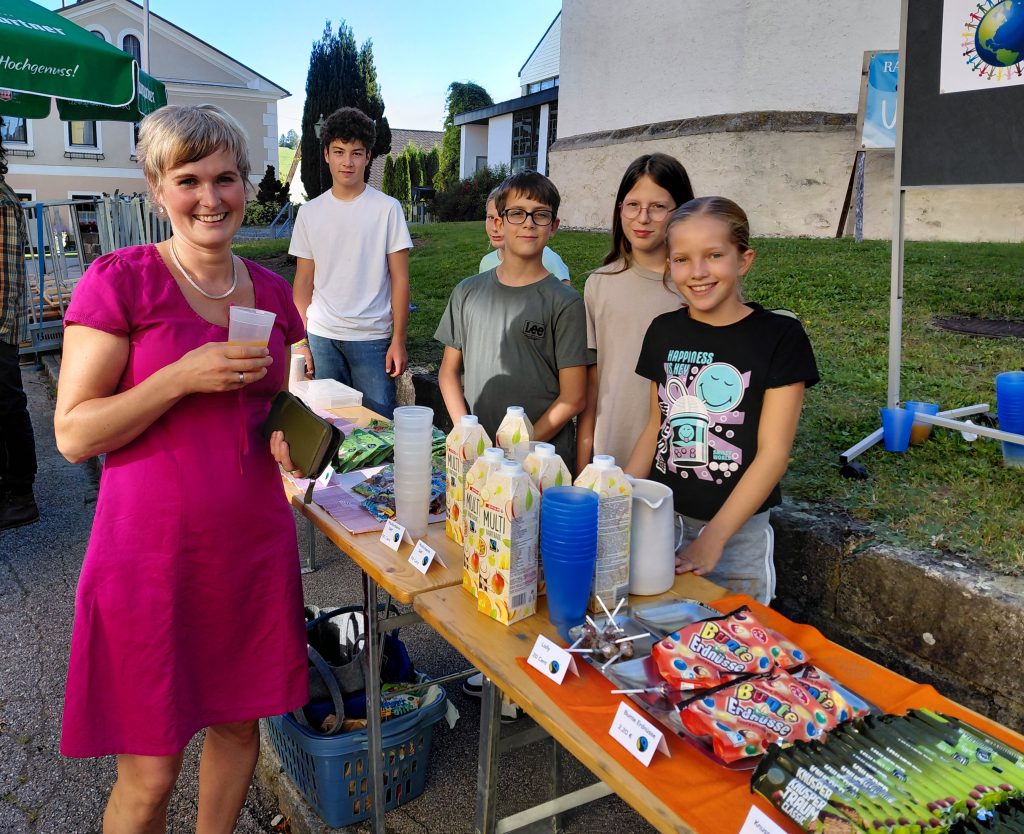 Am 19. Sept. durfte unsere Schule am Lembacher Marktplatz gute Fairtrade-Produkte verkaufen, z. B. Kakao, Bananenkuchen, Erdnüsse, Schoko-Herzerl und Bio-Fruchtgummi. Die Besucher des Festes kauften sehr viel bei uns ein. Der Kakao war schon nach 30 Minuten ausverkauft. 20 Kinder waren in ihrer Freizeit im Schichtbetrieb sehr fleißig. Das Verkaufen machte uns großen Spaß und wir freuen uns auf das nächste Mal.
