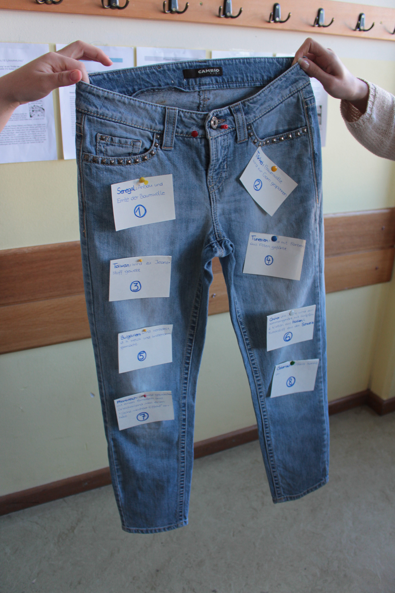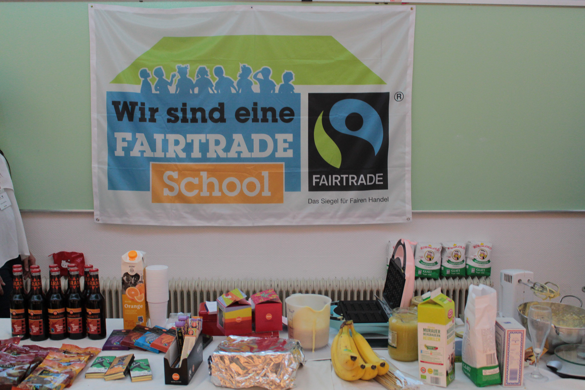 Es gab einen Verkaufsstand vom Weltladen bei dem auch faire Waffeln erzeugt und verkauft wurden. es wurden Vorträge zu den Theman Kinderarbeit, Jeans und Kakao besucht sowie das Thema im Unterricht aufgearbeitet.