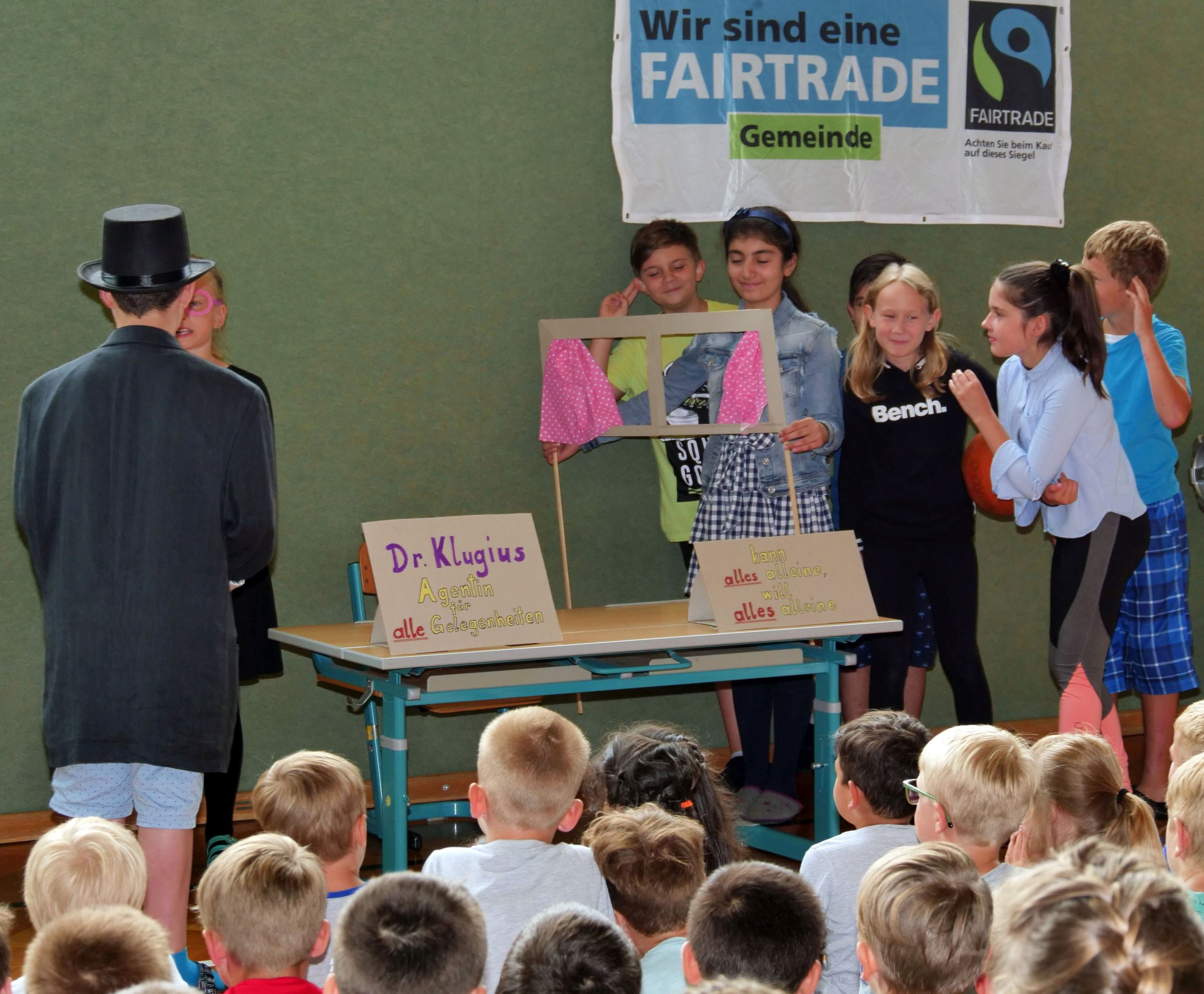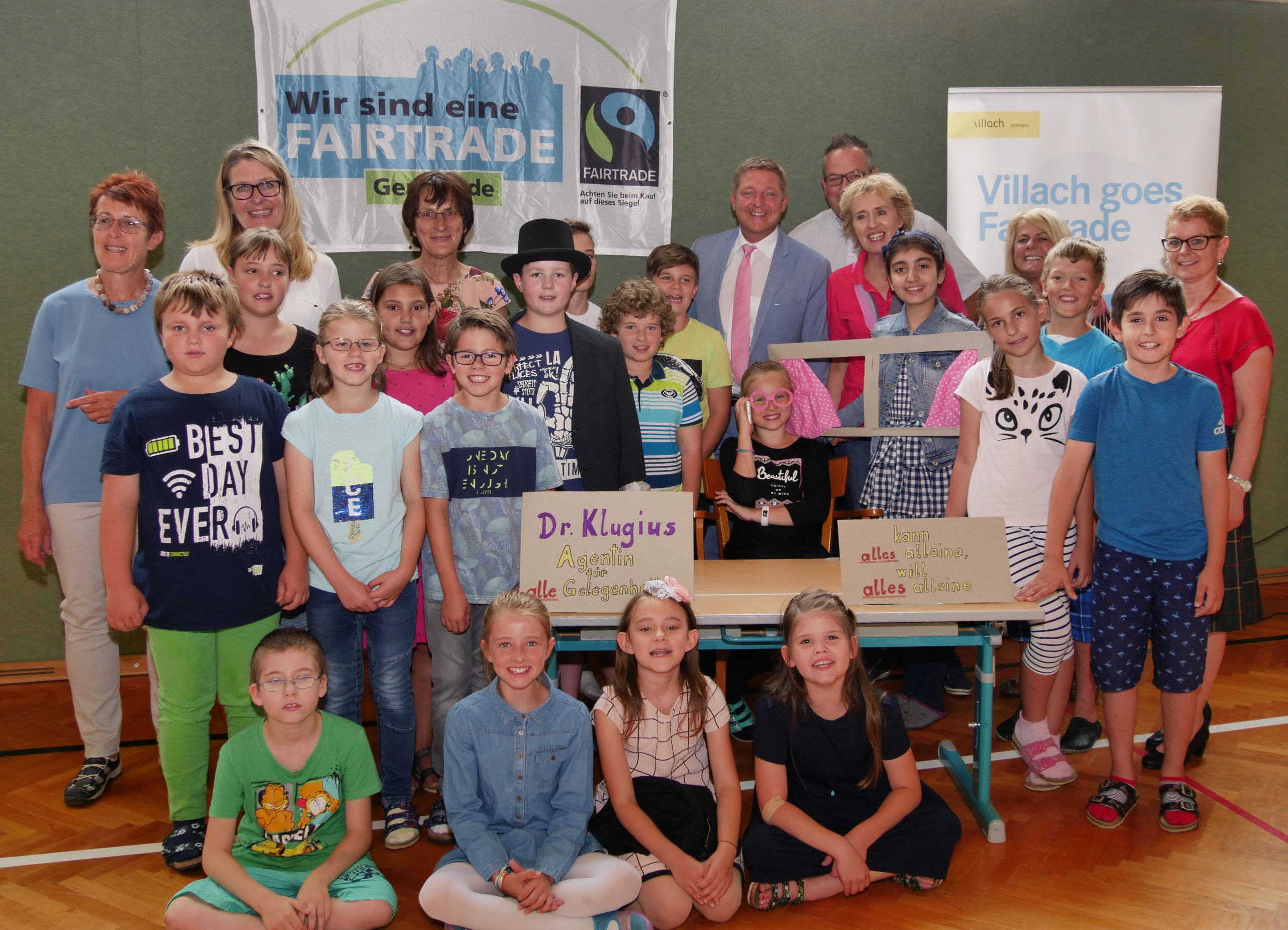 Die Stadt Villach ist seit 2016 Fairtrade-Stadt. Nun wird unsere Schule die erste Fairtrade – Schule der Stadt Villach und die erste Fairtrade – Volksschule  Österreichs. Dieses Vorhaben und den Start dazu feierten wir mit unseren Schülerinnen und Schülern im Rahmen einer „Kick off Veranstaltung“ am 14. Juni 2018.Die Schülerinnen und Schüler der dritten Schulstufe bereicherten die Veranstaltung gesanglich. Die Schulspielgruppe verdeutlichte mit ihrem Stück, dass gemeinsam viel mehr erreicht werden kann. Im Anschluss gab es für alle Kinder Köstlichkeiten vom Fairtrade-Bufett.